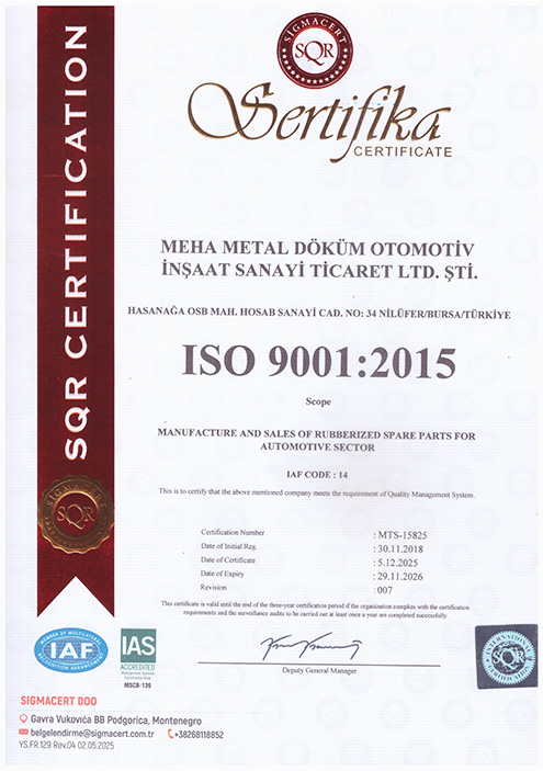 Our company was established in 2012 by BURDÖKSAN, the leader in the sector with 35 years of production experience and knowledge, to produce rubber-to-metal, rubber, and flywheel products in the automotive spare parts sector, and operate under the MEHA AUTOMOTIVE brand.